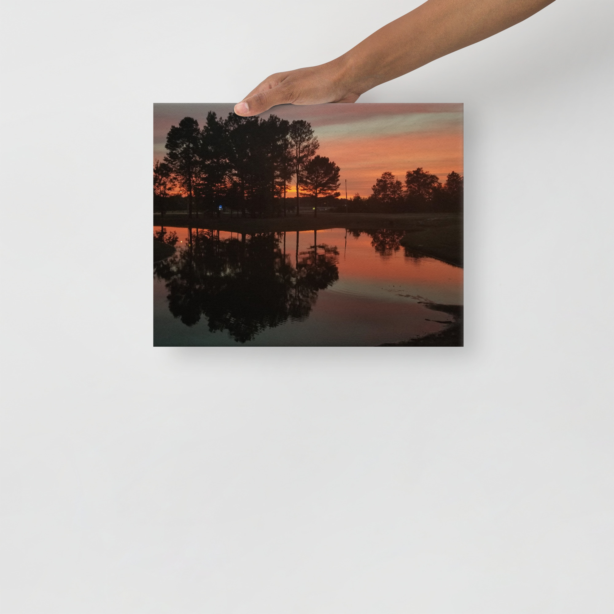 I was taking this picture of a beautiful skyscape featuring red, orange, and pink glowing clouds during a June sunset at Ballard Park in Tupelo, Mississippi.